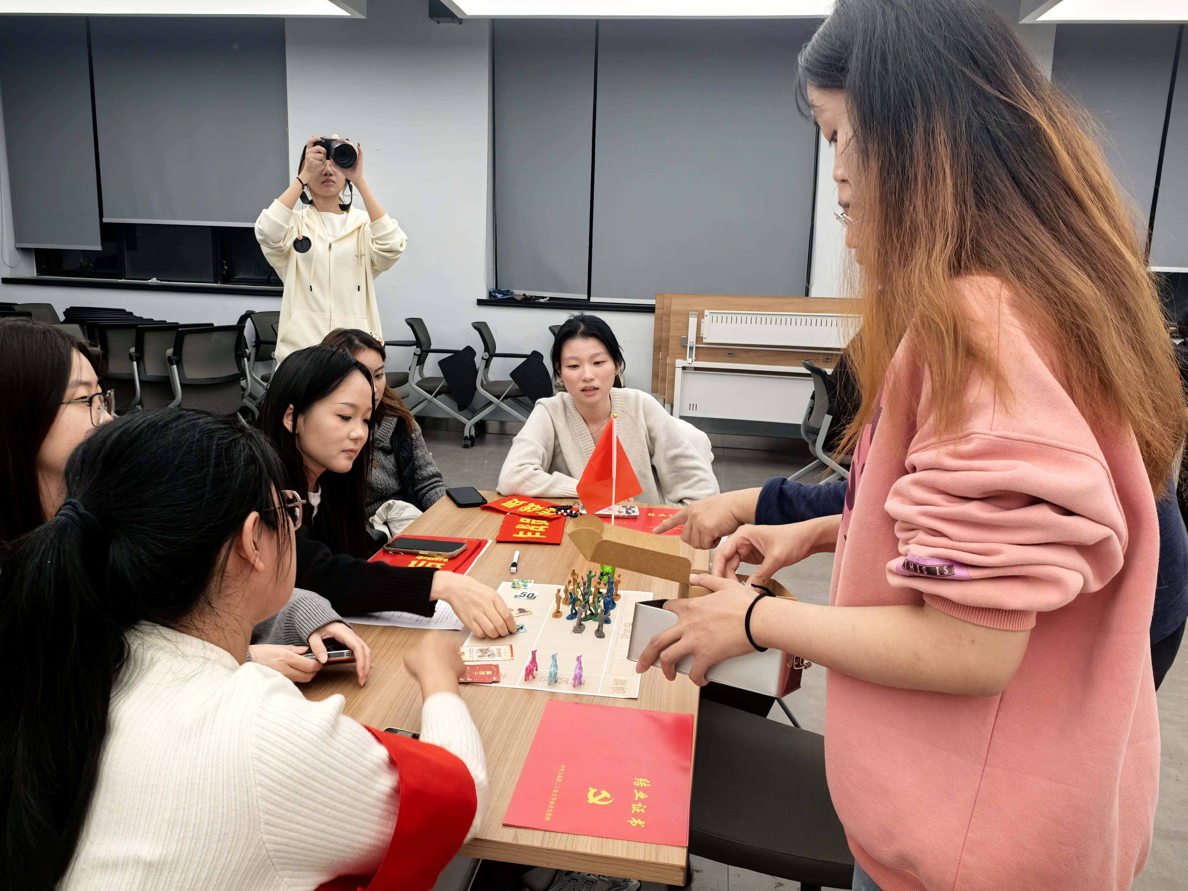 为创新红色文化传播形式,让长征精神以更鲜活的方式走进大众生活,11月5日下午17:30,《长征途记》桌面游戏展示活动在24号楼303室顺利举行。本次活动由教师党员李瑞琪带领学生党员及党员发展对象共26名学生参与此次活动,通过“游戏+历史”的融合模式,开启了一场别开生面的长征精神学习之旅。