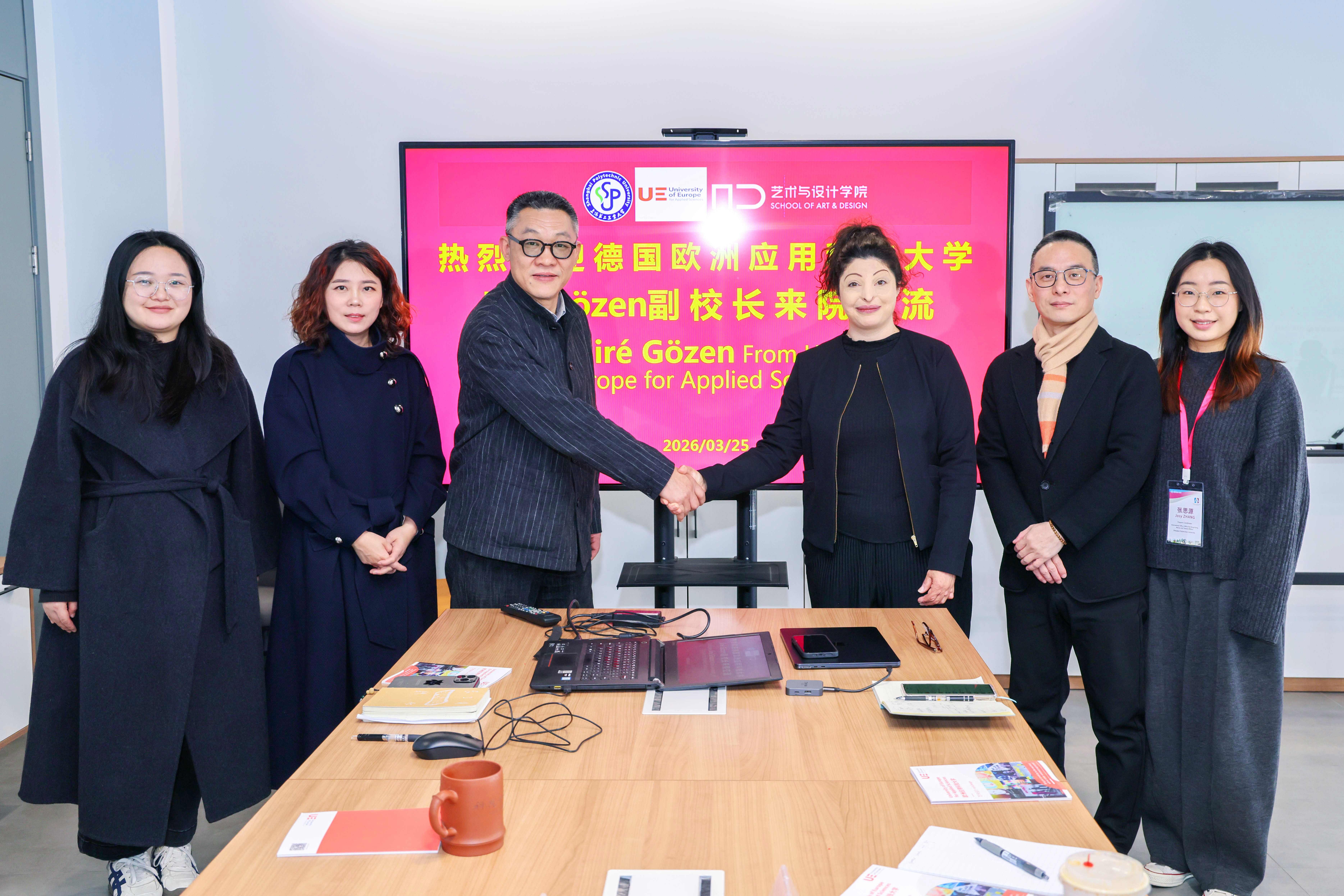 上海第二工业大学2026年全球合作伙伴周活动于3月23日至27日顺利举行。本届伙伴周以“智汇未来:产学研融合与AI时代人才塑造”为主题,聚焦人工智能时代背景下高等教育与产学研协同发展的新机遇,深入探索高素质应用型人才培养的创新路径。来自全球16个国家和地区的26所高校的校长、专家学者代表走进艺术与设计学院优秀设计作品展厅,近距离感受我院的设计教育成果。3月24日至25日,学院先后接待了英国莱斯特大学与德国欧洲应用科技大学代表一行,达成多项合作意向。